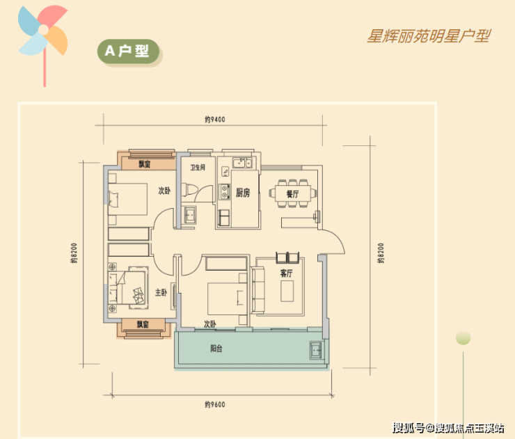 1、三面宽朝南设计:客厅、主卧、次卧均为南向,阳光充足;