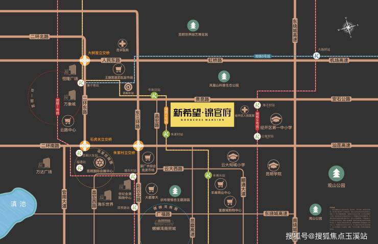 项目择址昆明城东板块,对望万象城,周边恒隆购物中心、富康城购物中心、羊甫商业中心、世纪金源购物中心,四大商圈围合,休闲、娱乐功能映衬都会生活。