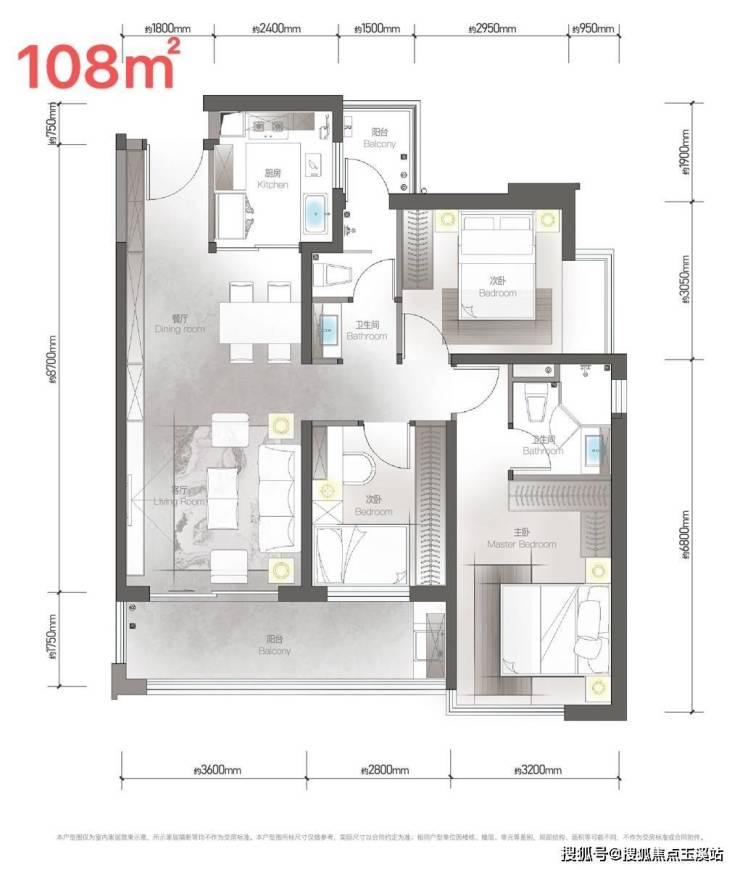 三开间开阔采光,约6.8米大阳台,科学动静分区,舒适套房主卧,厨房直连阳台