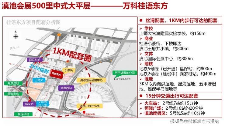 项目周边范围内聚集环湖湿地公园、三大商业综合体(万达城、公园1903、滇池会展中心)及云大附中星耀校区等优质资源。正在建设的5号线二期工程设站距离项目很近,2026年通车后将实现快速直达市中心。更值得关注的是,周边规划的滇池文化艺术区大剧院等文化IP入驻,未来将形成昆明的"滨湖文化带"。