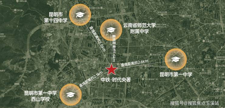 项目最大亮点在于引入昆一中西山学校教育集团领办公立九年一贯制学校。该教育集团实行"一校两牌"管理模式,核心校昆一中西山学校作为省一级一等完中,2024年高考一本率达89.5%,附小则为市现代教育示范学校。现阶段业主子女可优先入读现有校区,未来新校区将实现36班小学+18班中学配置。周边范围内还聚集云师大附中、昆一中等4所一级一等完中,形成K12全龄优质教育链。
