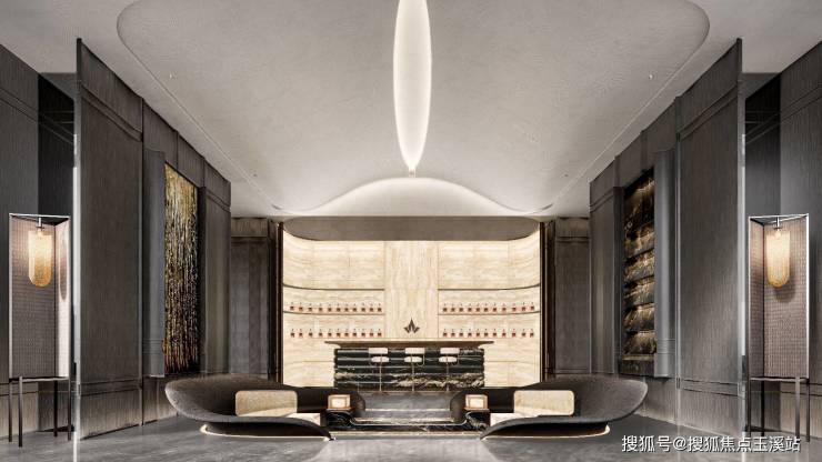 融合毫米级精控技术,参数化几何美学、石材全水刀切割、立体拼接、3D建模仿水波加工等,与时空共鸣的美学图腾。
