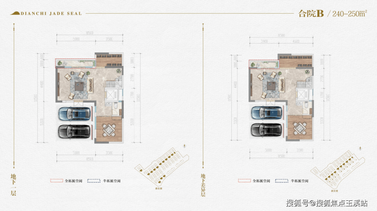 合院B户型:产权面积250平,花园面积:20-200平,实体院墙围合型花园,带车位,价格:980-1300万,独立花园