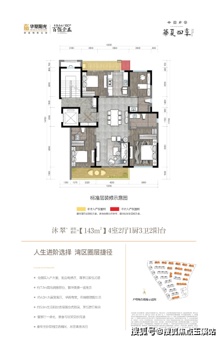 178户型,大四房,院落式景观阳台,墅级横厅,多功能中西双厨(约562-633万)
