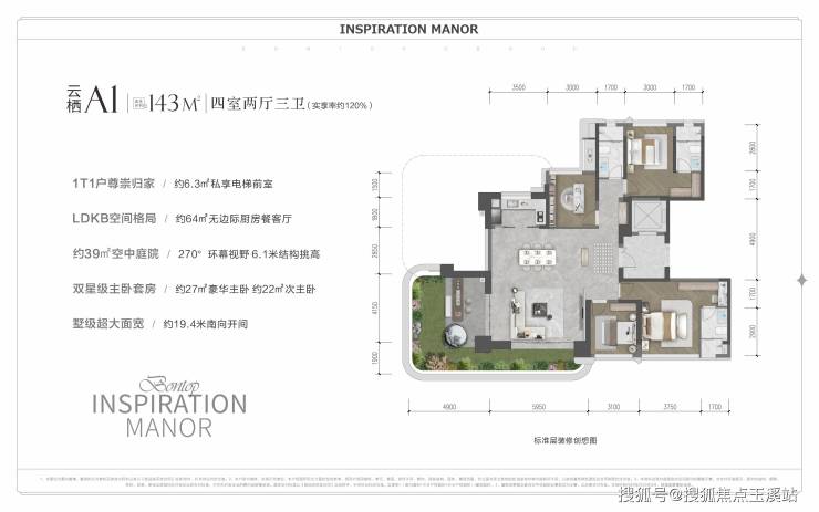 建面约143-199㎡第四代精装浮岛大平层