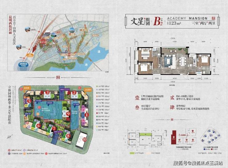 产品设计呈现梯度化特色。在售的A2-3二期现房为毛坯交付,2/5/9栋98-128㎡三房、四房满足刚改需求;即将于2025年6月交付的三期产品则主打"观滇视野",10栋、13栋的89-130㎡户型创新采用"双阳台+多飘窗"设计,得房率超82%。其中16栋部分房源坐拥滇池全景,101㎡三房创新设计"U型厨房+三分离卫浴",在功能性与景观性间找到平衡点。