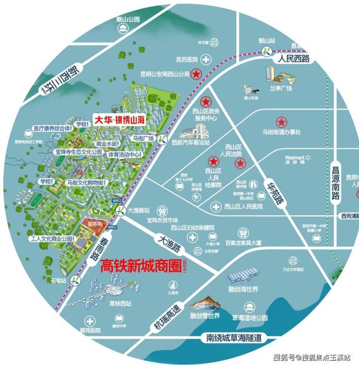 高铁:紧邻高铁西站,规划2027年建成,届时将连通昆明南站;
