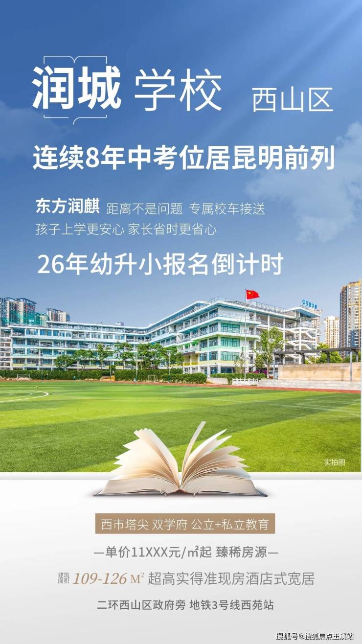 4、 东方润麒 :位于西山区海源路与昆州路交叉口,携手昆明润城学校,这所十二年制民办学校连续多年在西山区中考中名列前茅。项目主推建面约89-126㎡的高得房率产品,均价约12000元/㎡。