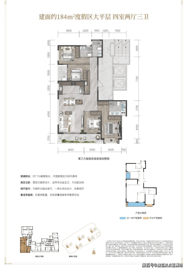 面积段:建面约143-184㎡度假区精装大平层